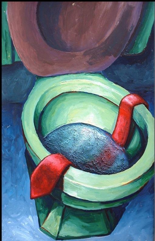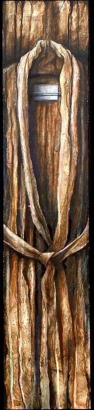 “Basking in the Sun” – Oil on Canvas – 8×12″ SOLD“Summoned” – Acrylic on Canvas – 12×8″ SOLD“Conservative Toilet” – Oil on Board – 32×20″ SOLD“Summoned” Study – Graphite on Paper – 12×8″ SOLD“Robe” – Oil on Canvas – 40×16″ SOLD