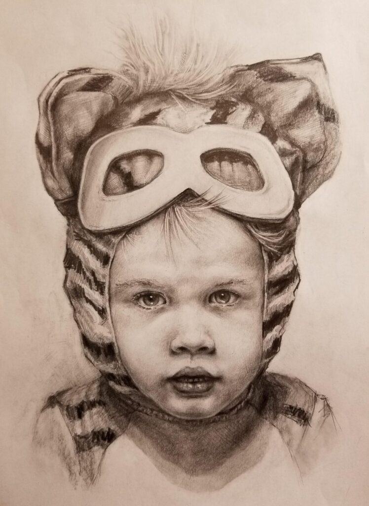 “Wild Thing” – Pencil on Paper – 12×8″ PRIVATE COLLECTION“Afraid of Heights” – Acrylic on Canvas – 24×36″ SOLD“Before the Storm” – Charcoal of Paper – 34×28″ SOLD“Conformity” – Acrylic on Canvas – 12×12″ SOLD“Body Jacket” – Oil on Canvas – 40×16″ SOLD